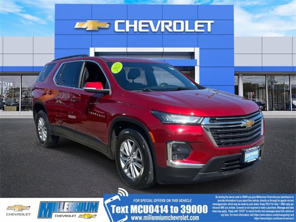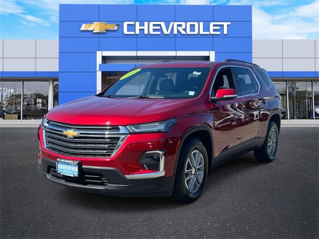 Certified. Radiant Red Tintcoat 2023 Chevrolet Traverse LT Leather