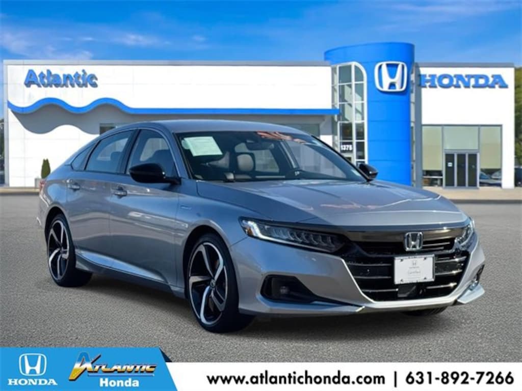 Priced below KBB Fair Purchase Price! 44/41 City/Highway MPG Clean CARFAX. CARFAX One-Owner. Odometer is 4212 miles below market average! Subject to the primary lender's approval. All prices exclude tax, title, dealer fee of $695, tags, license & DMV. Vehicles are sold cosmetically as is. Not all cars are certified where as many do pass the certification process, the customer does have the right to add an optional extended service agreement. Thank you for your interest in one of Atlantic Honda's online offerings. 2022 Honda Accord Hybrid Lunar Silver Metallic FWD 2.0L 4-Cylinder DOHC 16V i-VTEC eCVT Sport Certified. 2.0L 4-Cylinder DOHC 16V i-VTEC. Certification Program Details: Roadside Assistance Yes; Roadside Assistance for the duration of the Certified Pre-Owned Limited Warranty. Up to two complimentary oil changes within the first year of ownership. SiriusXM 90-day trial.