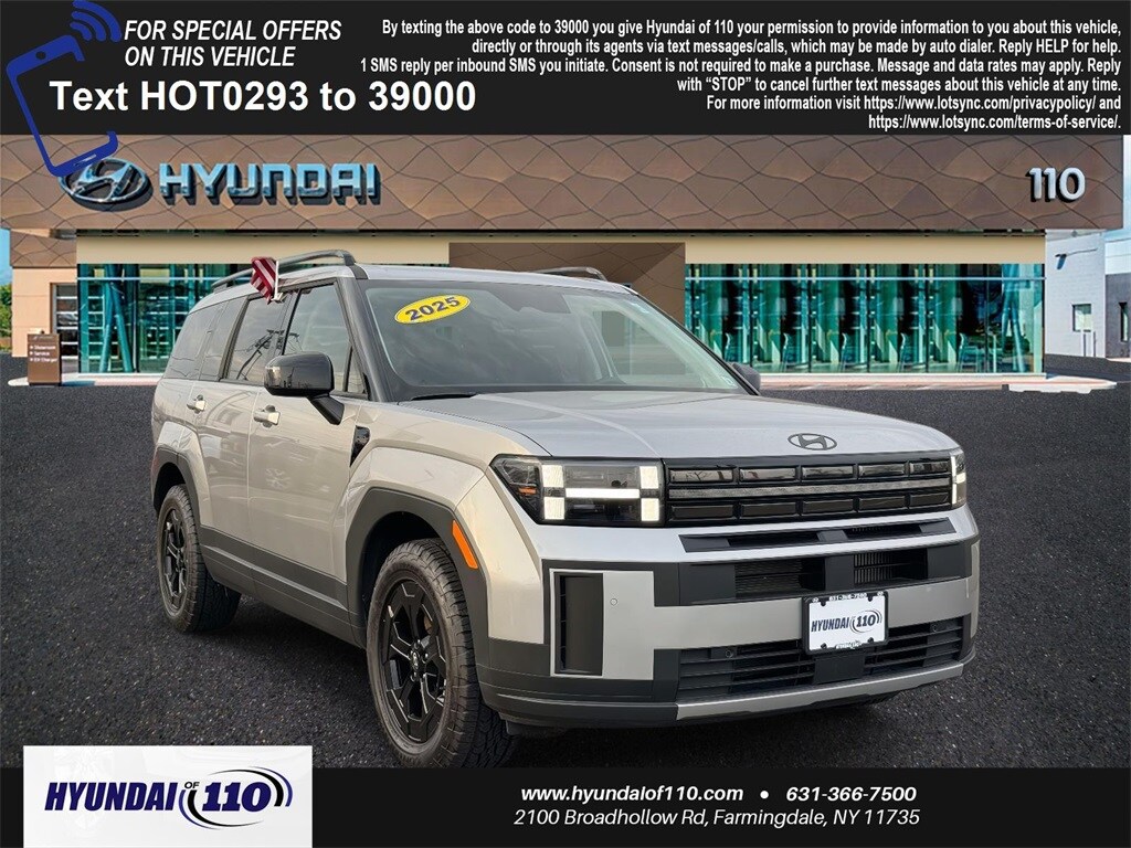 Shimmering Silver Pearl 2025 Hyundai Santa Fe XRT AWD Shiftronic 2.5L I4 REMAINDER OF FACTORY WARRANTY, LIKE NEW, AWD, Black Artificial Leather.