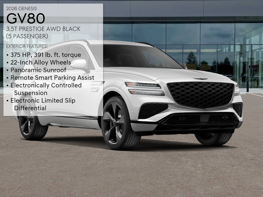 Not all rebates can be combined. Not all consumers will qualify for rebates. Please see dealer for details and eligibility. Final price is determined and set in agreement with consumer. Alta White 2026 Genesis GV80 3.5T Prestige AWD 8-Speed Automatic 3.5L DOHC