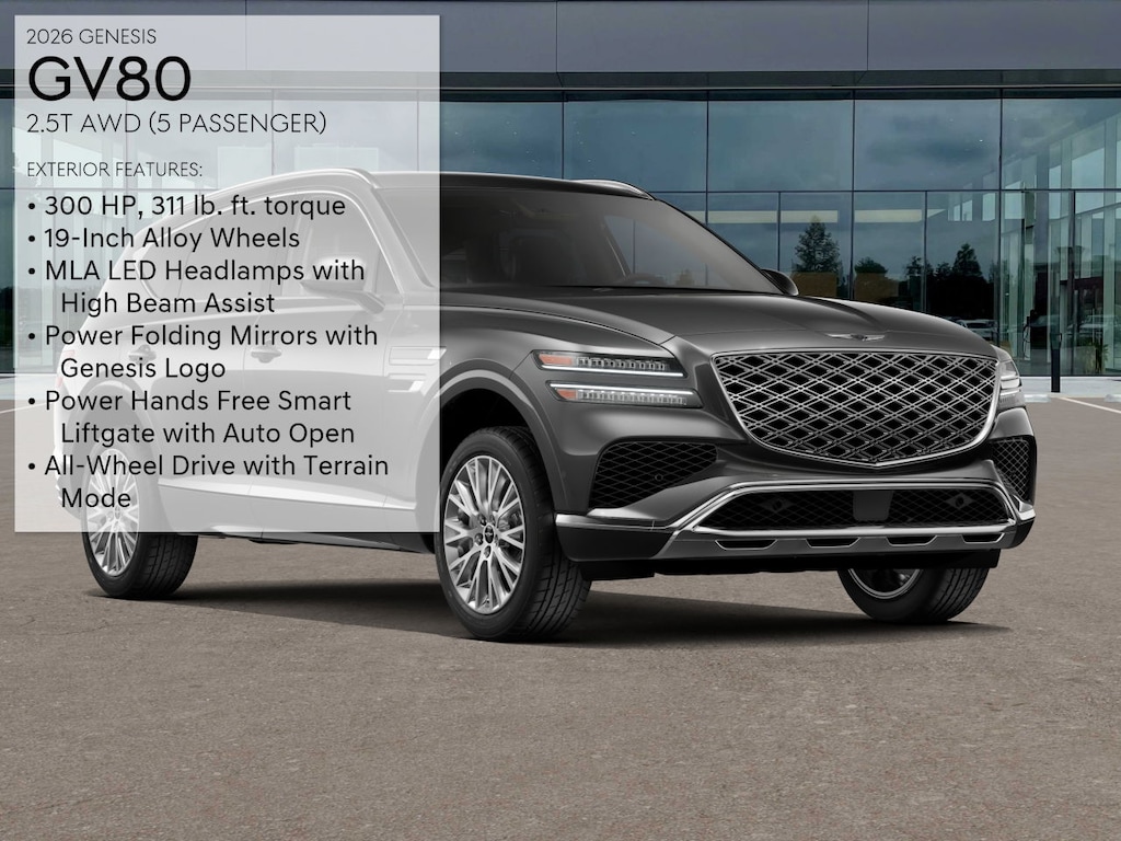 Not all rebates can be combined. Not all consumers will qualify for rebates. Please see dealer for details and eligibility. Final price is determined and set in agreement with consumer. Gray 2026 Genesis GV80 2.5T AWD 8-Speed Automatic 2.5L DOHC