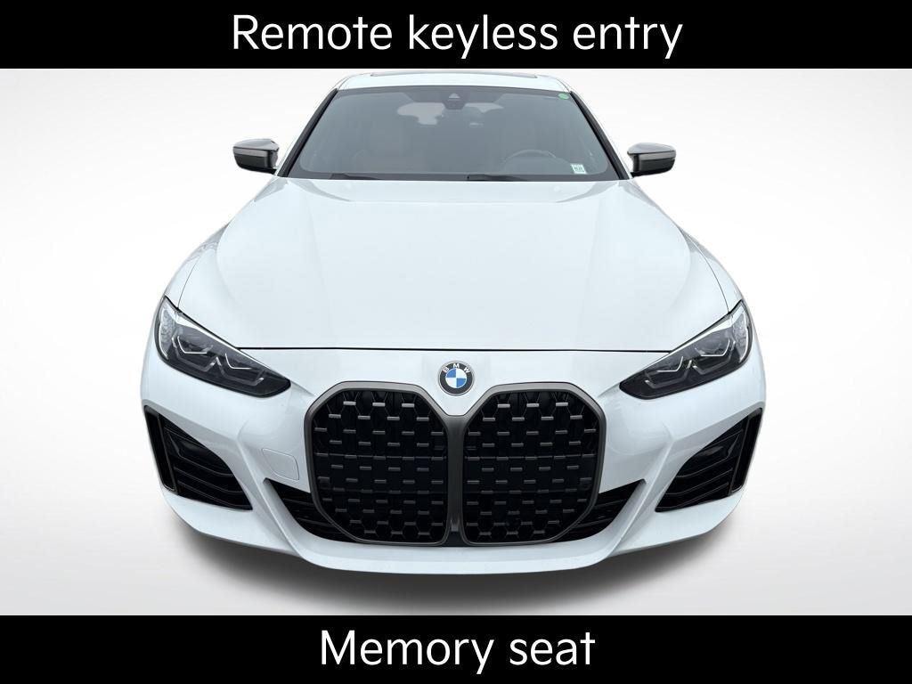 Aluminum Trim w/Mesh Effect, Apple CarPlay Android Auto Compatibility, Automatic temperature control, Exterior Parking Camera Rear, Fully automatic headlights, Memory seat, Navigation System, Perforated Sensatec Upholstery, Power Liftgate, Power moonroof, Remote keyless entry, Wheels: 18' x 8.5' M Bi-Color (Style 858M). Priced below KBB Fair Purchase Price! CARFAX One-Owner. 22/29 City/Highway MPG Alpine White 2022 BMW 4 Series M440i xDrive AWD 8-Speed Automatic Sport I6 Price is reflective after $1995 down. Subject to primary lenders approval. All prices exclude tax, title, dealer fees of $695, reconditioning, tags, license, DMV, finance charges, documentation charges, emissions testing charges, or other fees required by law, vehicle sellers or lending organizations. Must finance through dealer when applicable take same day delivery. Vehicles are sold cosmetically as is. Some displayed vehicles may not be available for a variety of reasons, such as subject to prior sales, removal and transport elsewhere, awaiting title and ownership confirmation. To better insure the specific vehicle's availability, you should contact the Dealership to confirm its present availability. Third party credit unions aren't a form of payment we accept. In order to receive this advertised price you must present and or mention this offer.